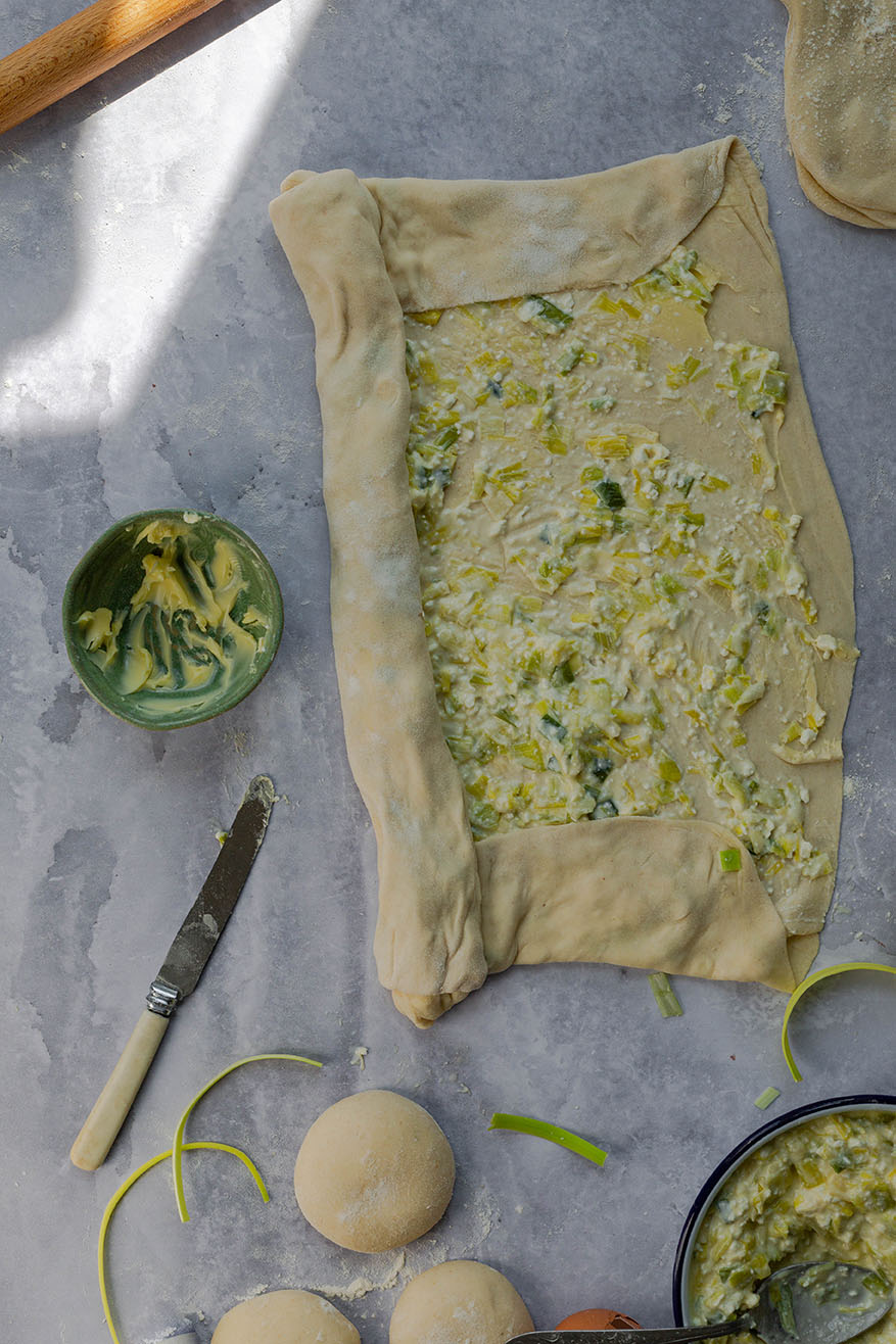 Folded-filo-pastry- sheet-with-leek-and-cheese